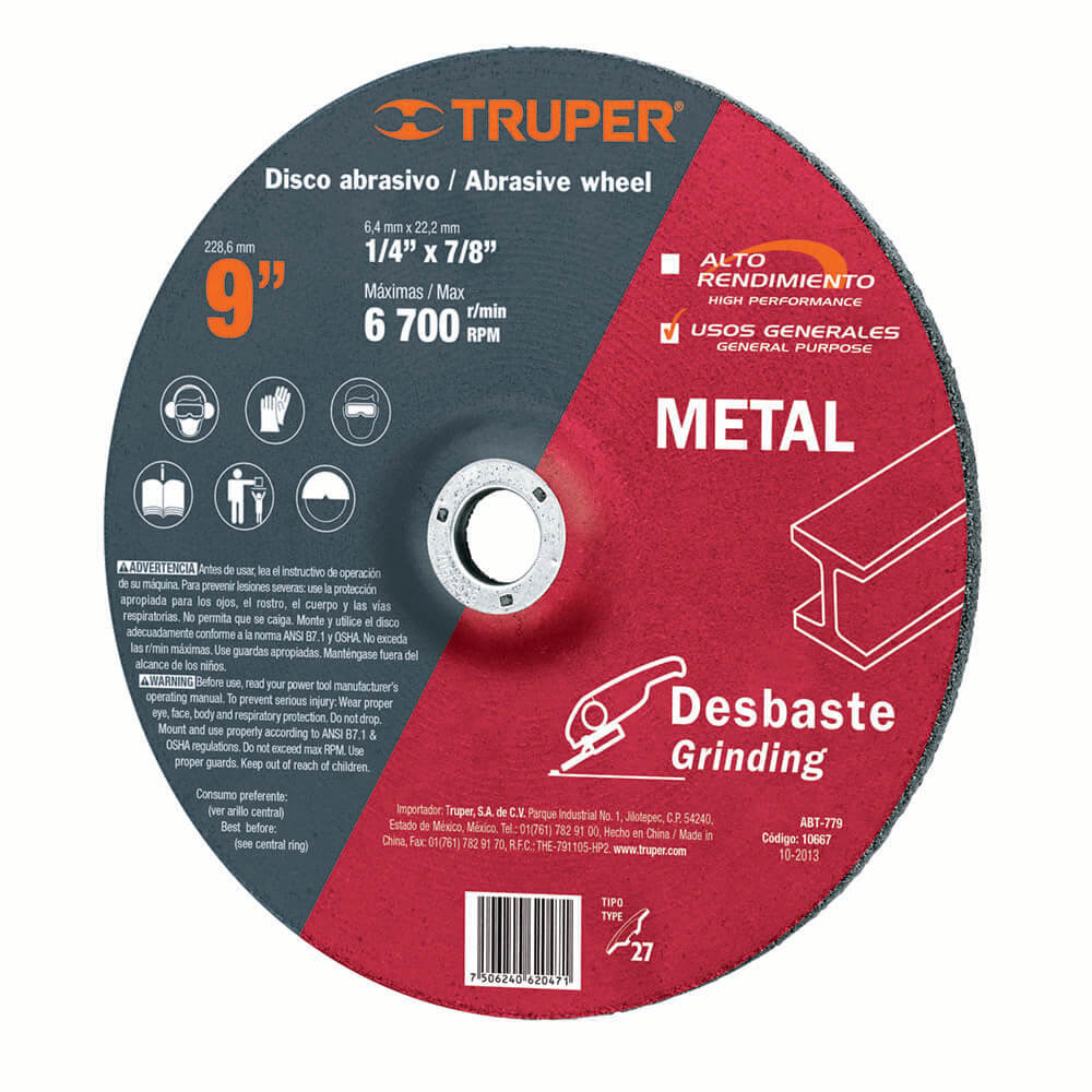 Универсален абразивен диск за шлайфане с дебелина 6,4 мм. Позволява употреба върху цветни и черни метали, ръждясали повърхности, дърво.