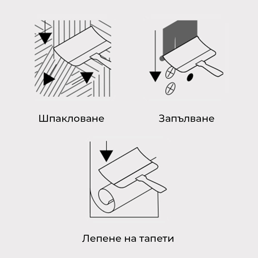 Фасадна шпакла за полагане на мазилки и замазки на стени и тавани. Подходяща е за обработка и заглаждане на големи площи. Острието е изработено от въглеродна стомана.