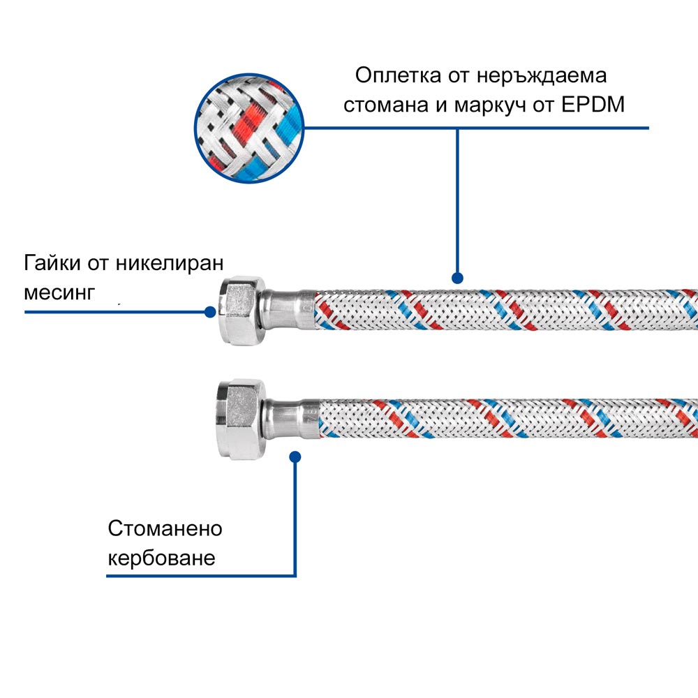 Гъвкава връзка Ж 1/2" и Ж 3/8" - 55 см