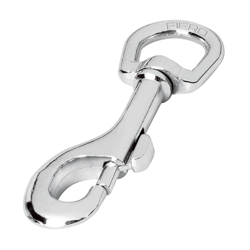 Карабинка с въртяща халка с ширина 22 мм и товароносимост 114 кг. Тялото е никелирано за допълнителна защита и устойчивост на атмосферни влияния.
