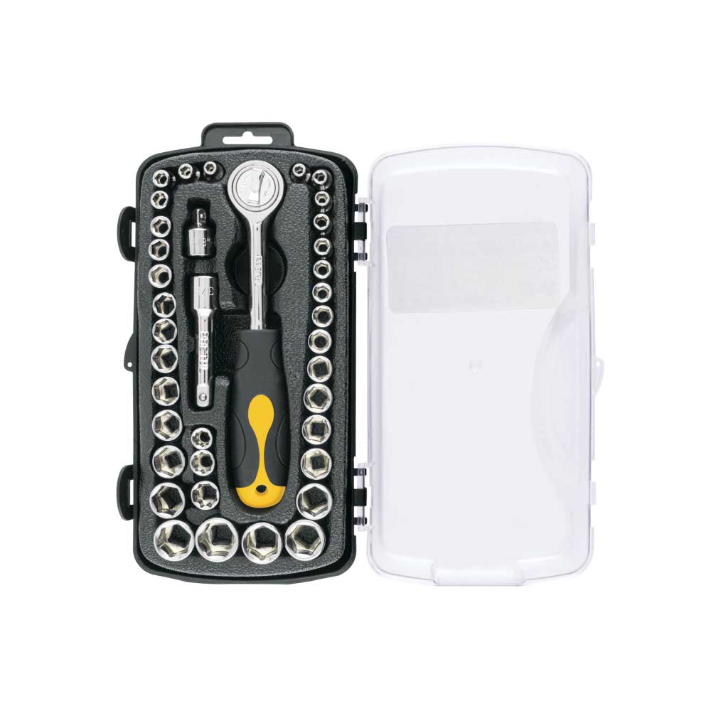 Удобен и практичен комплект тресчотка с вложки в кутия, изработени от въглеродна стомана.