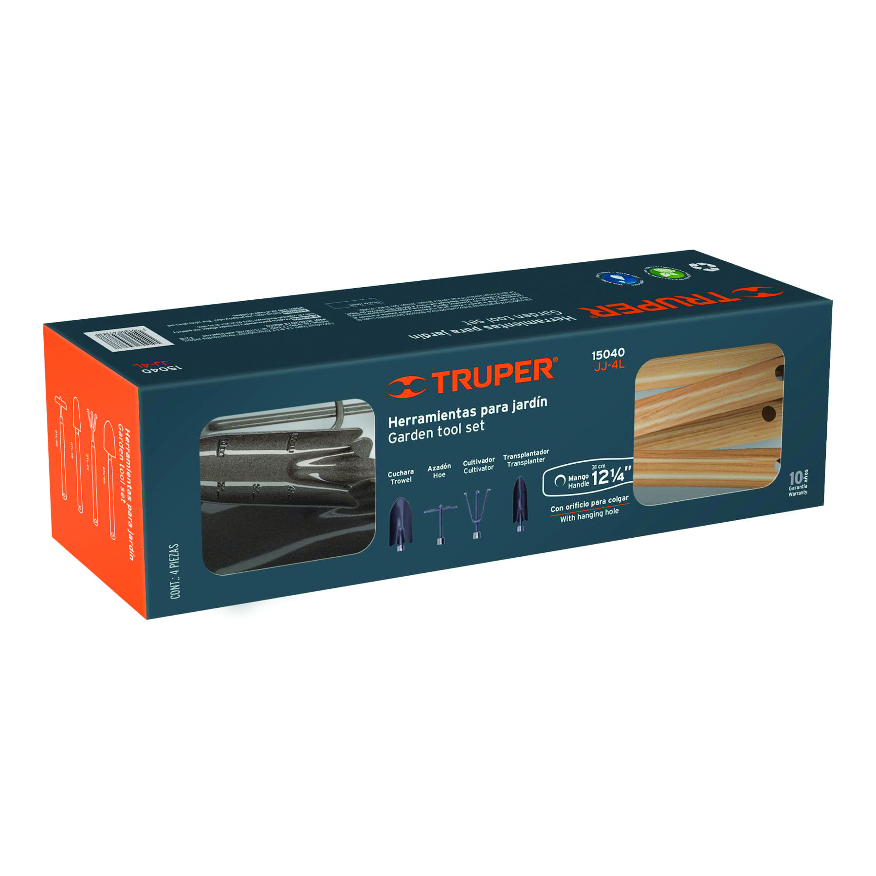 Включва: 1 тясна лопатка за садене; 1 лопатка; 1 мотика; 1 култиватор.