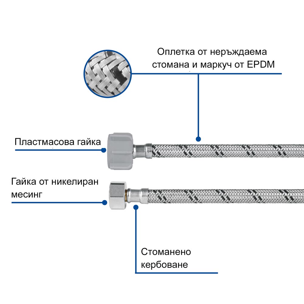 Мека връзка за тоалетно казанче/WC, 60 см, стомана FOSET 49528 – Ж 1/2″ и Ж 7/8″