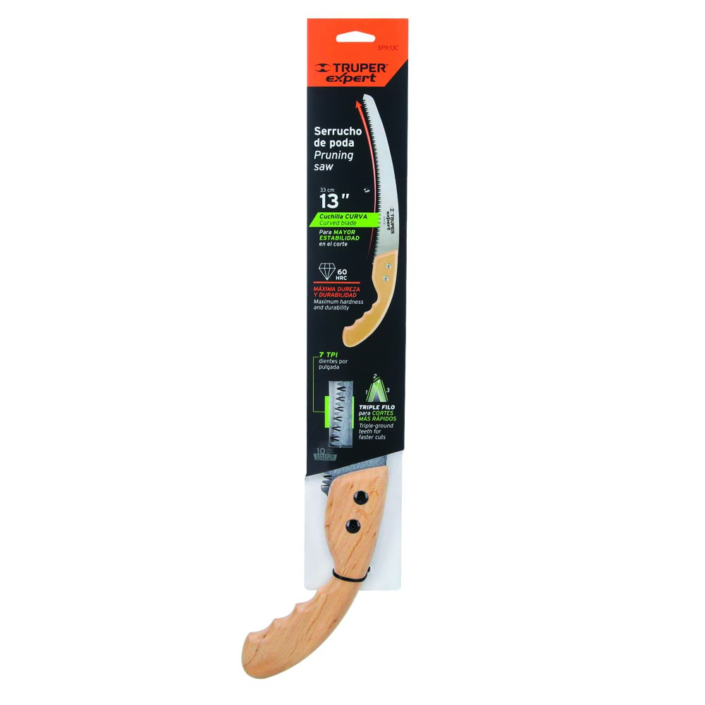 Овощарски трион с професионално качество от серията EXPERT на TRUPER ~. Идеален е за рязане и на по-високи и дебели клони, храсти, жив плет и др.