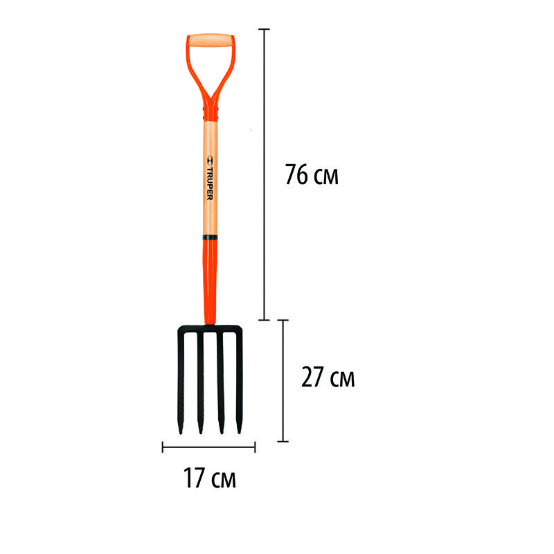 Усилена градинска вила с къса дръжка и удобен захват за две ръце.